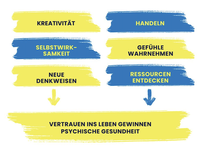 Unser Ziel ist es Kunsttherapie für mittellose Kinder zu finanzieren, damit diese durch kreative Methoden Wege zur Bewältigung ihrer Probleme finden.